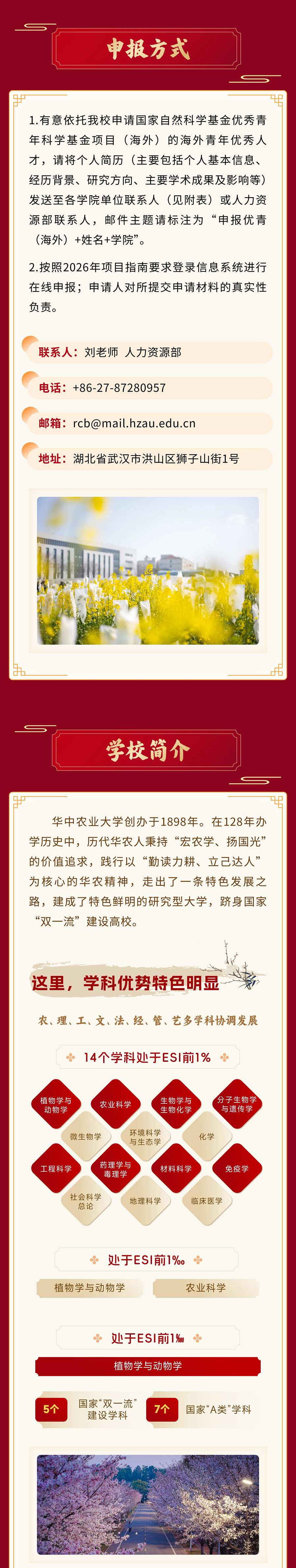 华中农业大学诚邀全球英才依托申报2026年海外优青